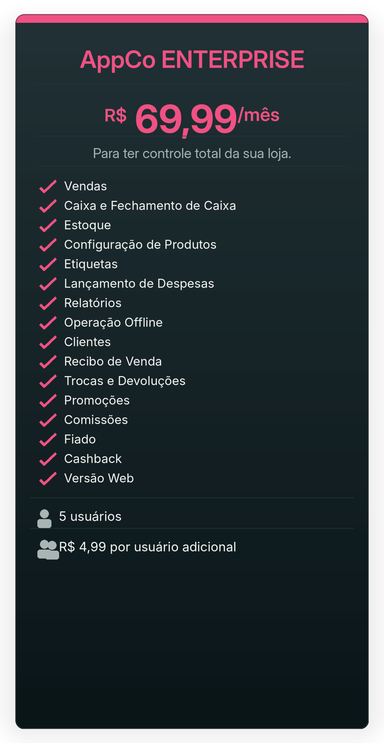 Tudo o que você precisa para vender, controlar e acompanhar sua loja direto no celular, de forma simples e rápida.